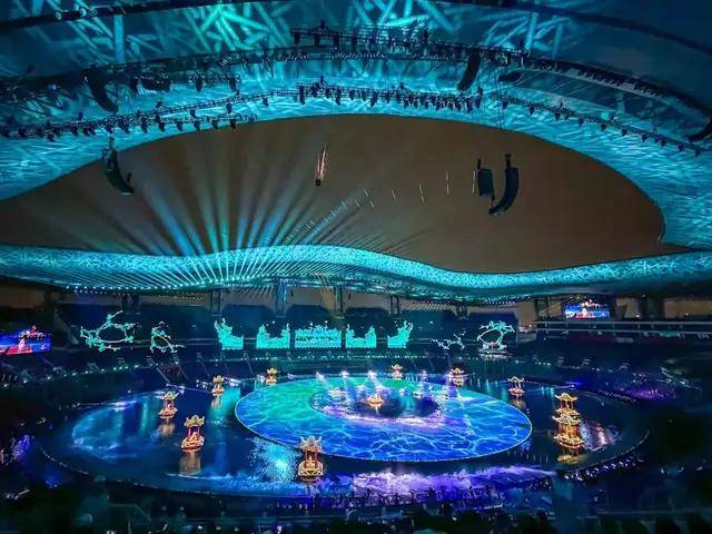 全运会总制作人王锐祥说,体育场空间宏大,容易显得空旷。环形舞台,可以将观众的视线平的核心表演区。