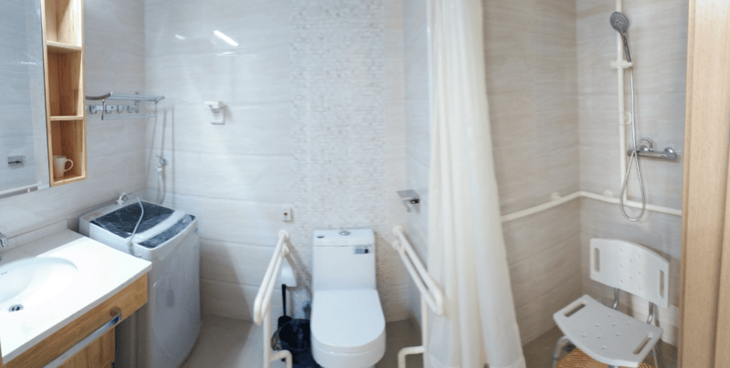 生活保障·细节拉满:北京市松鹤养老院有限公司饭厅配备餐桌餐椅、公告栏、消毒柜、防蝇设备,保障用餐安全卫生;洗手间及浴室设置安全扶手、防滑垫,规避意外风险;洗衣房配备专用洗衣机,定期消毒,保障衣物清洁卫生。